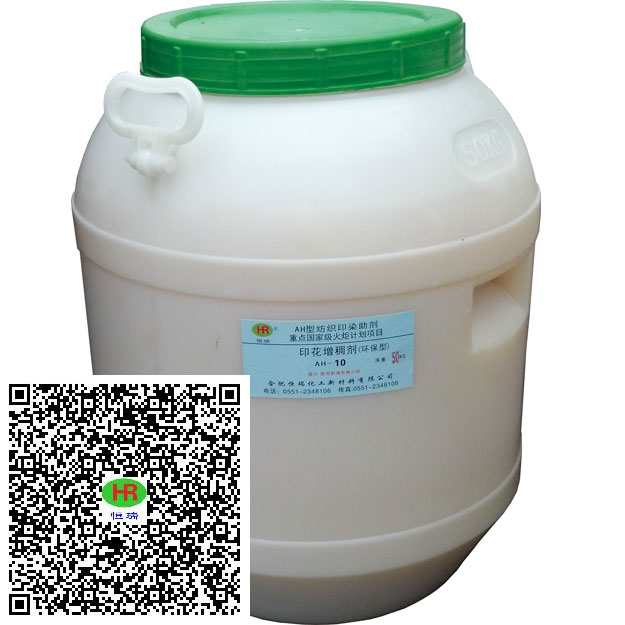 產(chǎn)品性能特點: 1、經(jīng)濟效益和社會效益顯著,是A幫漿的理想替代品,可改善生產(chǎn)車間的環(huán)境。 2、 調(diào)制簡便。按比例用量摻入色漿中加水稀釋,只需攪拌即可增稠。 且可根據(jù)色漿粘度隨意調(diào)節(jié),調(diào)制后的色漿穩(wěn)定,在有蓋容器內(nèi)存放半個月不分層、不結(jié)皮、不變稀。 3、 原印染工藝不受影響,各項色牢度甚至有所提高,花形輪廓清晰,色澤鮮艷。 4、與AH系列粘合劑配伍使用效果佳。